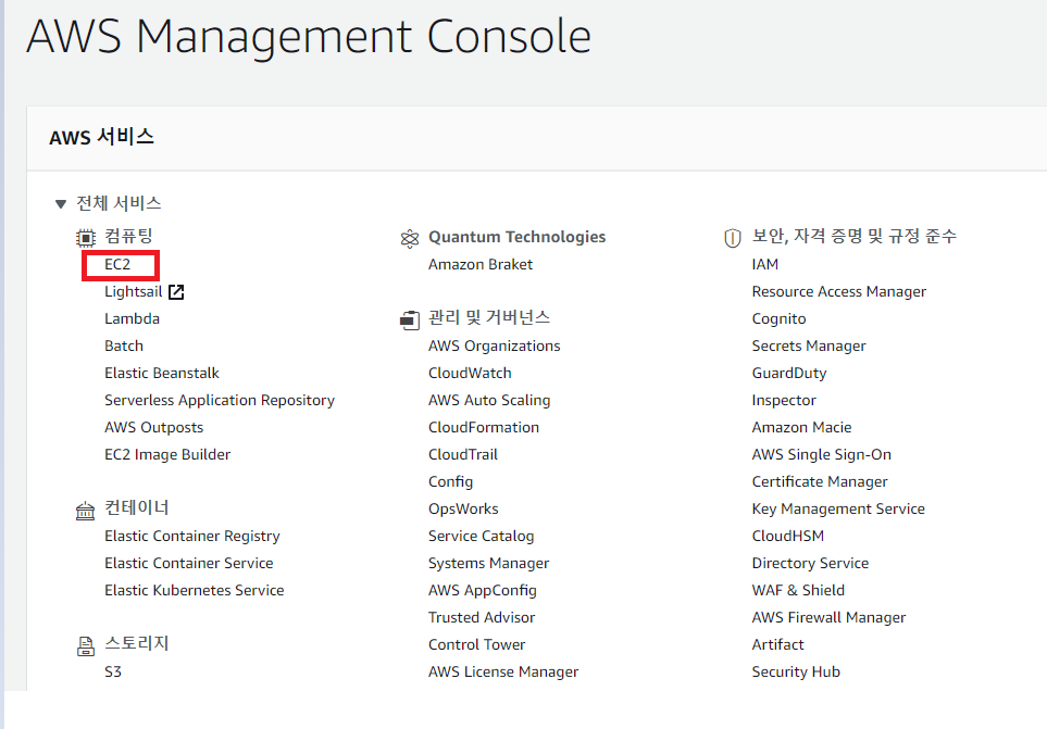 빨간색 네모박스에 있는 EC2 클릭.