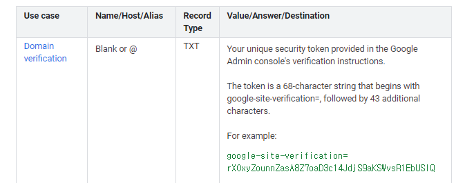 구글에서는 TXT record를 도메인 소유권 확인용도로 사용합니다.