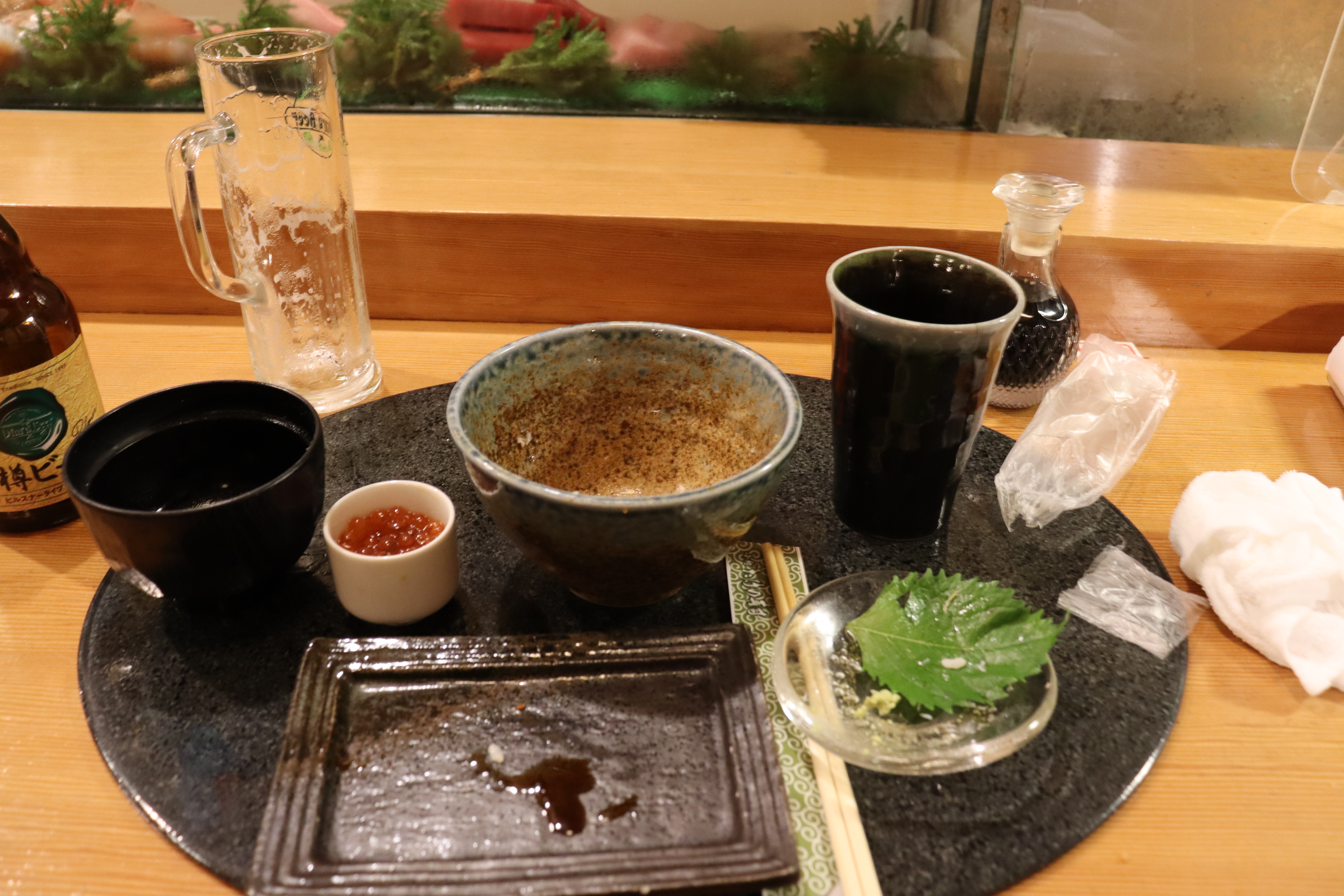 정말 맛있게 먹었습니다. 저기 돌 주전자에 가쓰오국물이 있어서 마지막에 오차즈케 해서 먹으면 됩니다.