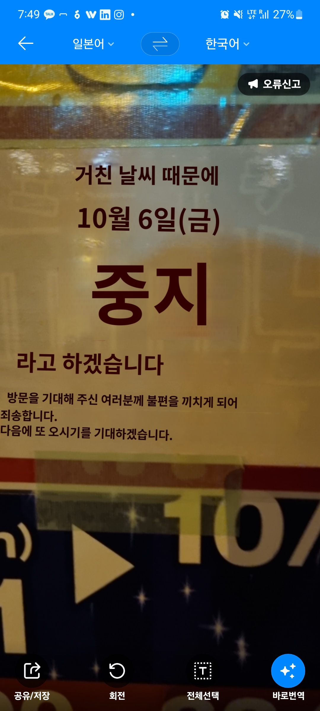 비가 오더니 바람이 엄청 불었습니다. 나중에 확인해보니 풍속이 70m/s... -_-...