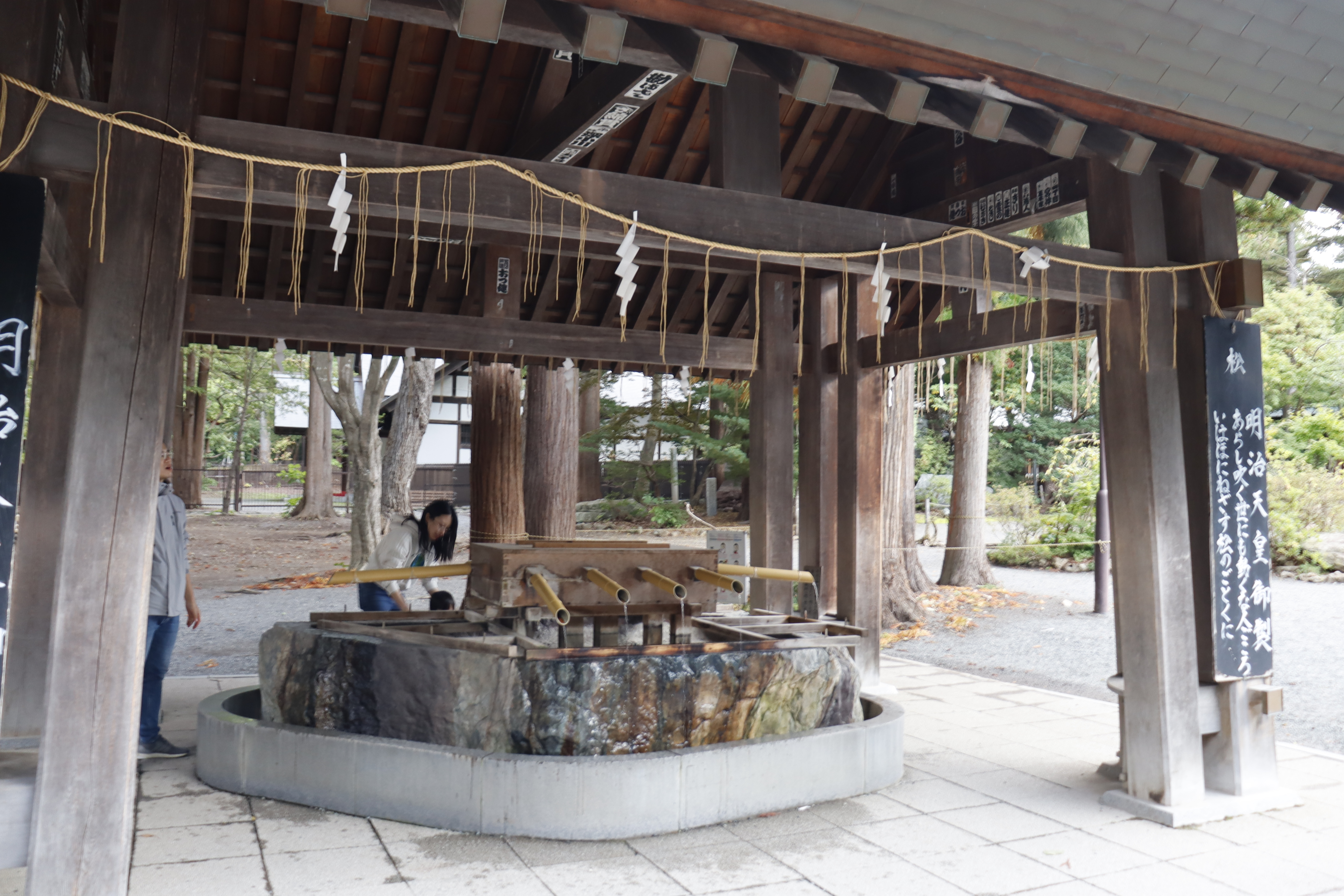 이런 나무들도 있고, 신궁 안쪽 들어가기 전에는 손 발을 씻는 곳도 나옵니다.