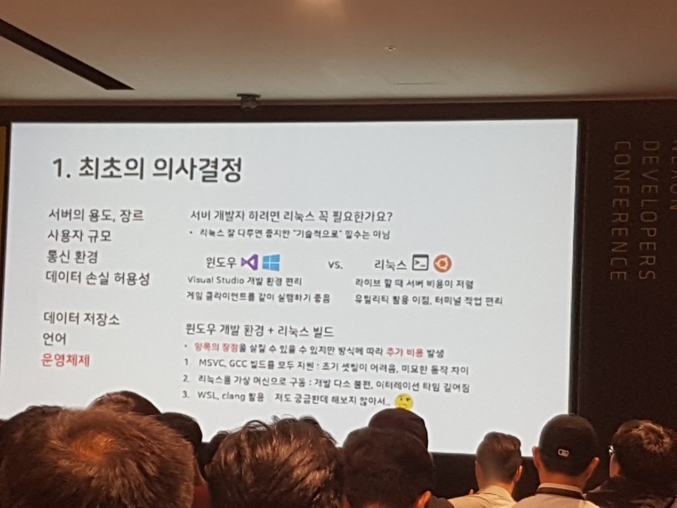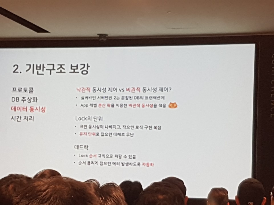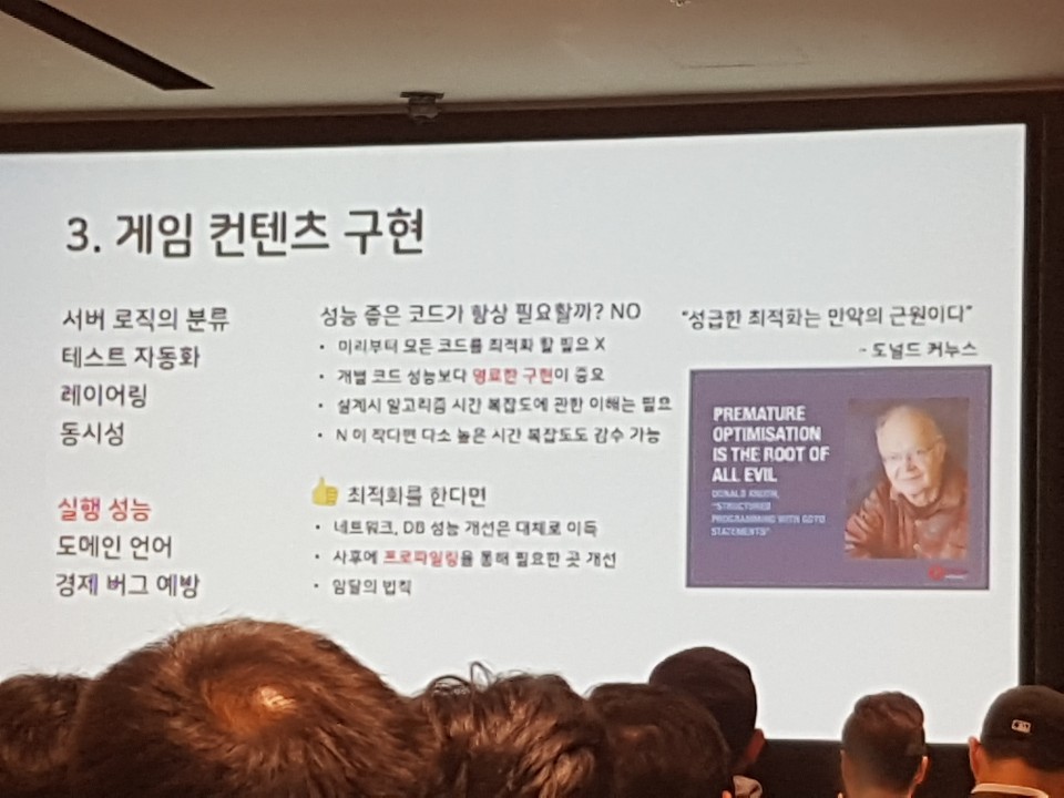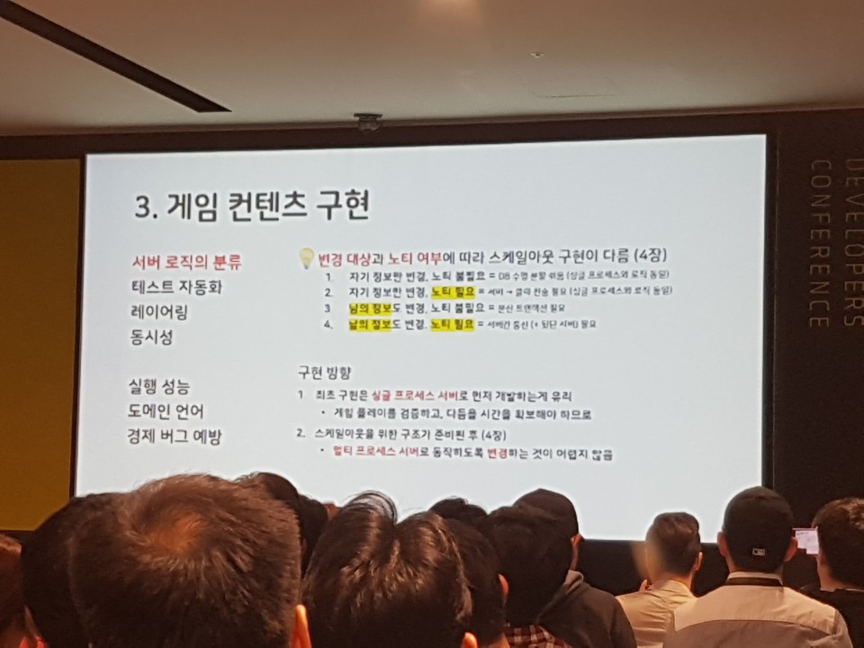 그 다음 15:15에 진행되었던 '게임 서버의 목차 (시작부터 출시까지)' 라는 강연을 들었습니다.